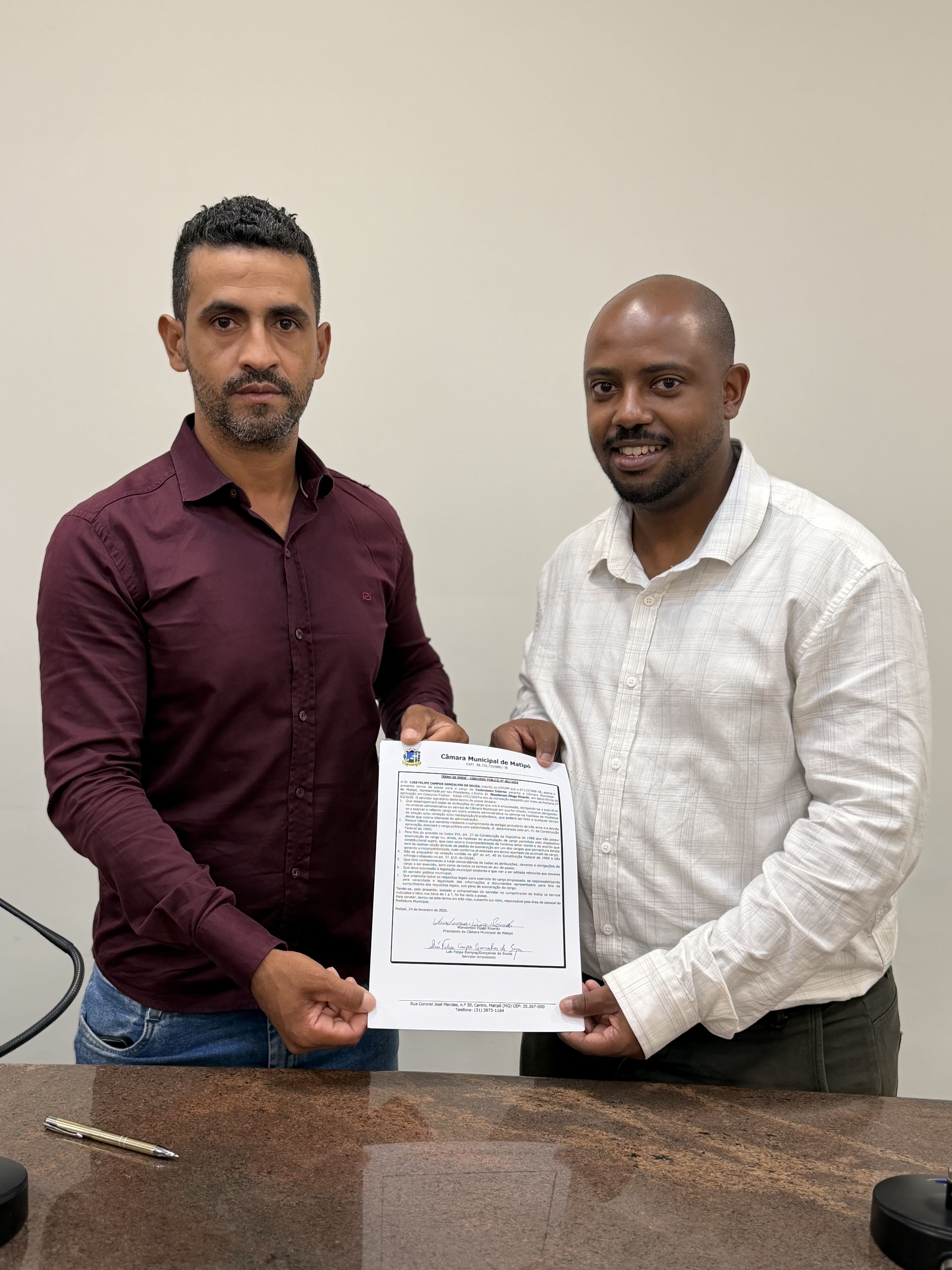Desejamos ao servidor Luis Felipe pleno êxito nesta nova etapa e reiteramos o compromisso da Câmara Municipal de Matipó com a responsabilidade, legalidade e aprimoramento contínuo dos serviços prestados à população.